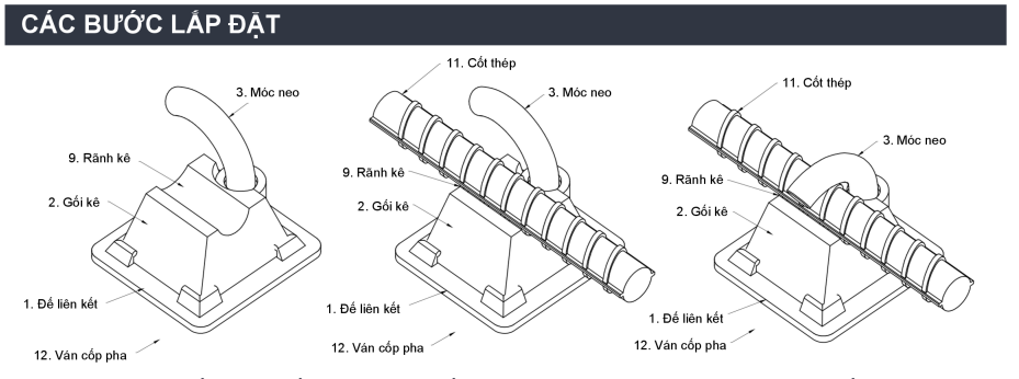 - Đế liên kết: bề mặt gắn cố định vào cốp pha
